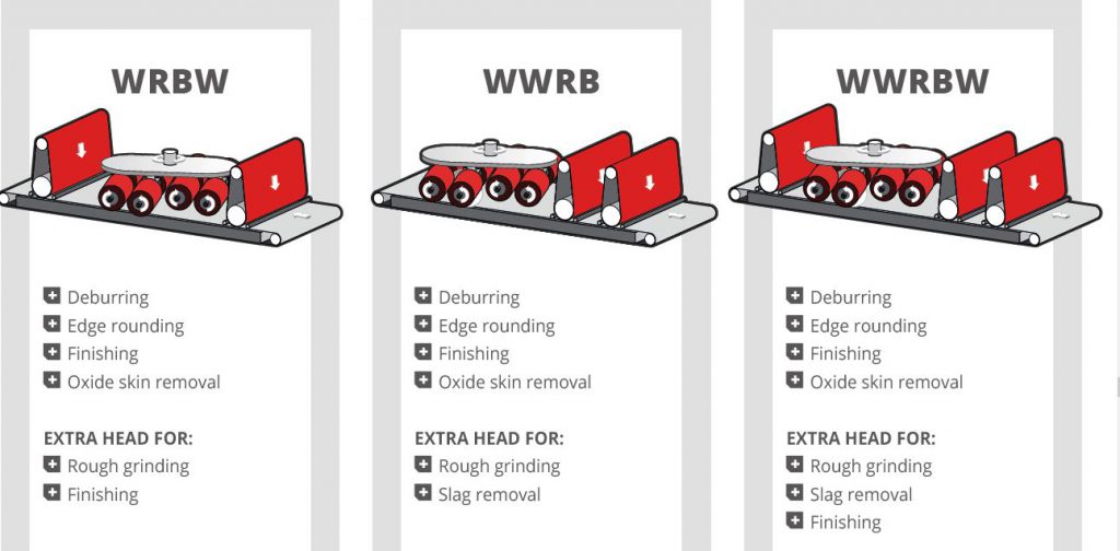 此款去毛刺機可配備一個或多個研磨帶磨頭,從而完全去除大毛刺,并確保完美的表面效果。42 RB 1350系列設備擁有變頻驅動控制的轉刷,因此適用于經等離子切割、3D和機加工的工件。此外,其還可加工30-1600 mm的各種大小的工件。可加工材料包括不銹鋼、鋁、鍍鋅板、鋅和貼膜產品。
