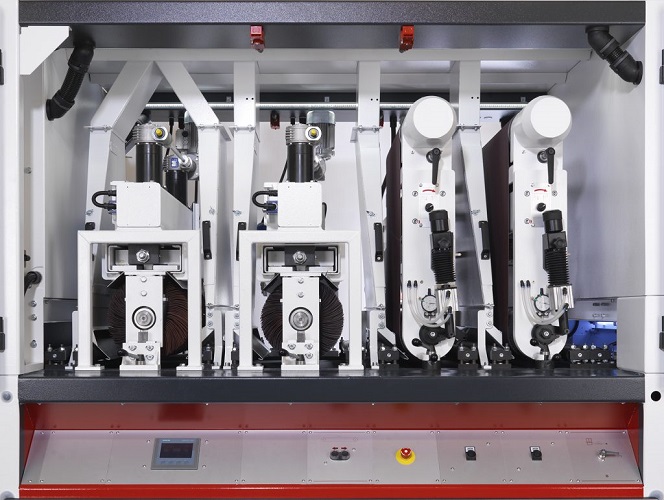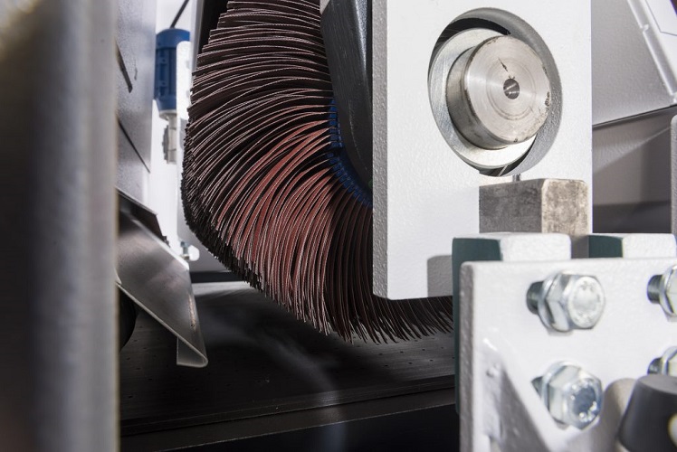 900 mm、1100 mm、1350 mm、1600 mm,現(xiàn)在甚至還有 2000 mm。這個(gè)系列的機(jī)器最多可配 4 個(gè)磨頭,可選各種研磨帶、砂碟和刷輥組合。集成不同的磨頭,它便可在一道工序中進(jìn)行去毛刺、拋光和倒圓角作業(yè)。此款機(jī)器也可用于對(duì)打磨件、激光切割工件或無(wú)毛刺工件進(jìn)行倒圓角。