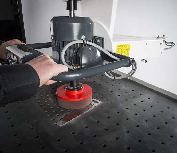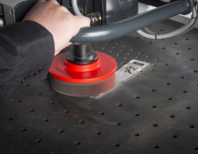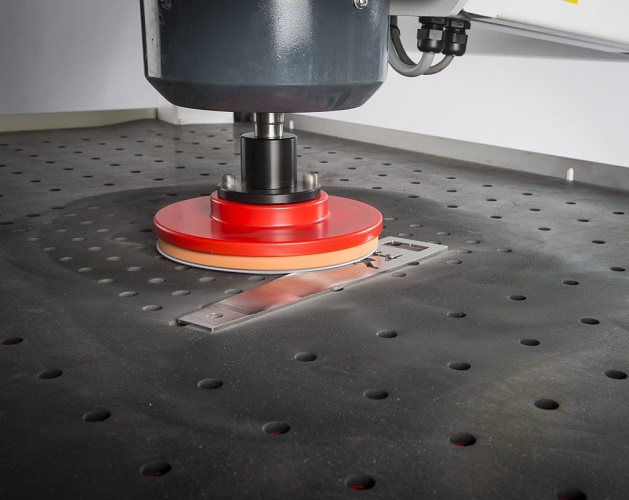 機器臺面的專用墊擁有高阻尼防滑表面,可在去毛刺和表面拉絲時固定工件。通過集成真空吸附平臺將小工件固定到位。